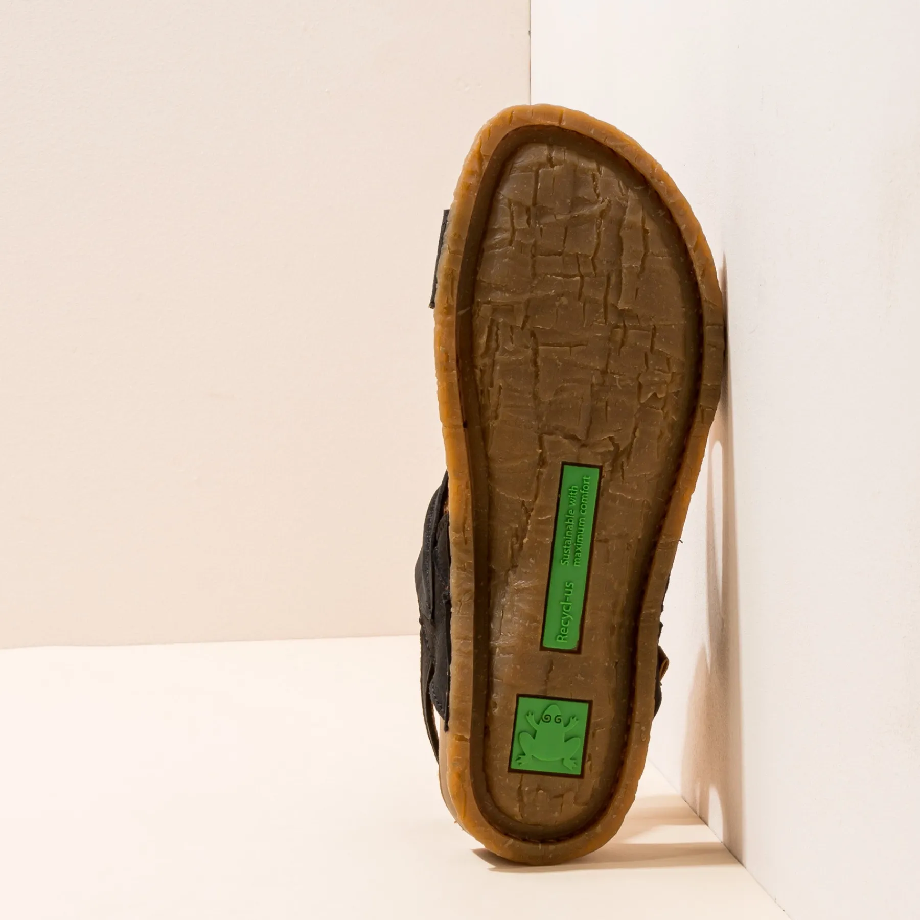 Sandalia Que Unifica Suela De Caucho Reciclado Y Plantilla En Una Sola Pieza Reduciendo Asi Un Componente Y Facilitando Su Reciclaje. El Diseno De La Suela Esta Inspirado En El Tronco De Las Palmeras De La Isla Panglao De Filipinas. Esta Linea Destaca Por Su Flexibilidad. En Su Interior Tiene Alojado Un Memory Foam Reciclado Que Aporta Un Extra De Confort.